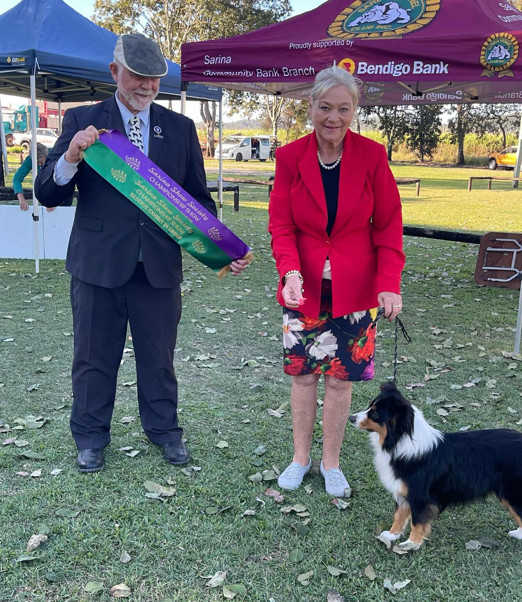 Pirate “Denimcreek All HandsOn Deck ( AI) is pictured winning another Puppy in Group at Bairnsdale and District Kennel club!