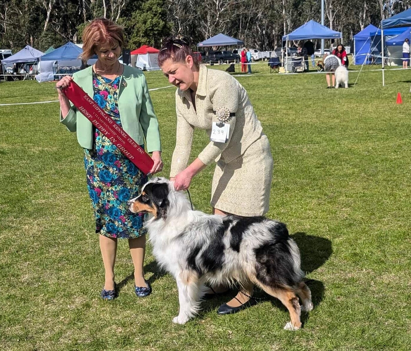 One win that truly stands out is Piper "Aust Ch Masgriff Thpiper At Denimcreek" winning Runner Up in Group (Group 2) and Puppy in Group in Queensland against some lovely competition! This was an especially thrilling achievement and a testament to Piper's exceptional qualities and training.